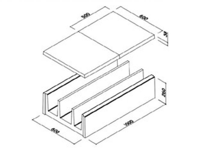 Prefabricated concrete channels for the grouping, routing and protection of a non-preset number of network power and telecommunications cables with variable diameters from 4mm to 32mm.