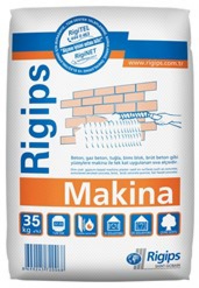 Rigips Makina Siva Alcisi (Rigips Machine Plaster) is a gypsum-based spray plaster which can be applied by a spray machine on any interior surface such as structural concrete or infill blocks. It should be applied minimum 8mm, maximum 30 mm in thickness.