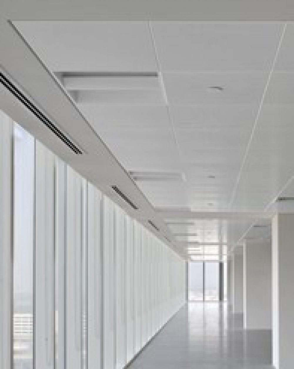 SAS System 150 is a modular clip-in steel suspended ceiling system; highly versatile square and rectangular clip-in tiles offer hinge down access throughout as standard. Tiles can pivot and slide along the suspension system providing access to large areas of the ceiling void. A range of acoustic backing options provide up to 42dB acoustic attenuation or Class A acoustic absorption.