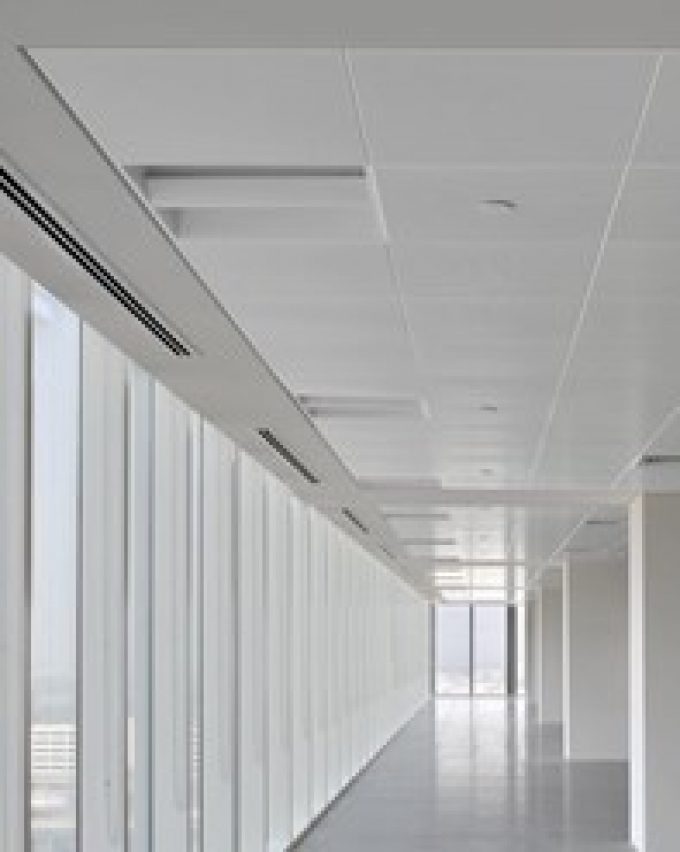 SAS System 150 is a modular clip-in aluminium suspended ceiling system; highly versatile square and rectangular clip-in tiles offer hinge down access throughout as standard. Tiles can pivot and slide along the suspension system providing access to large areas of the ceiling void. A range of acoustic backing options provide up to 42dB acoustic attenuation or Class A acoustic absorption.
