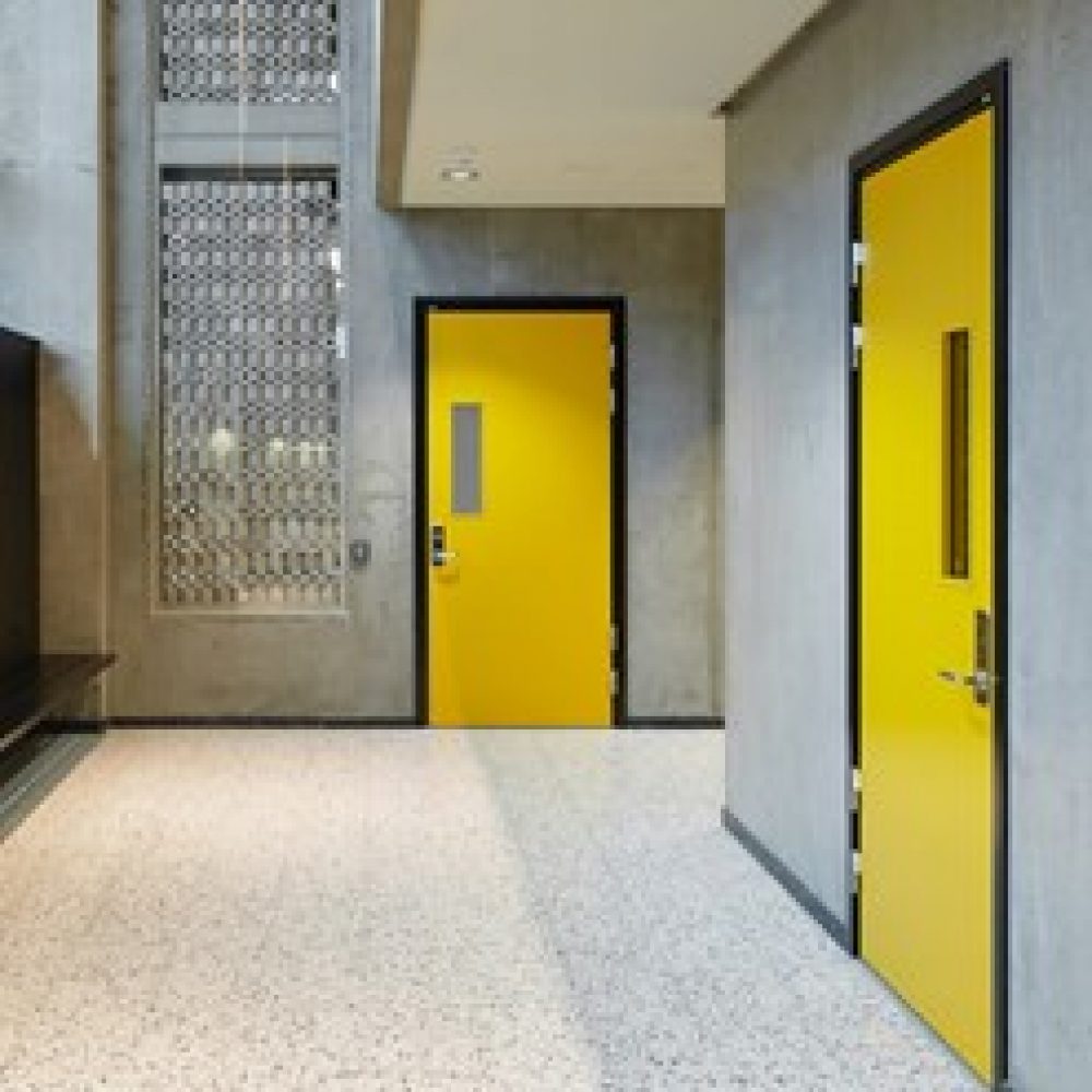 Solid door suitable for use in areas when the requirements for sound reduction are high while the door must also be fire resistant. The wooden doors are common in public areas such as offices, schools, hospitals, surgeries and sports halls.