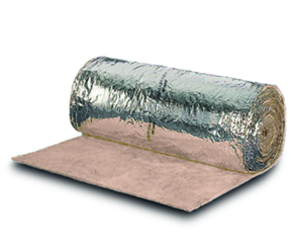 Isover glass wool thermal insulation felt with reinforced aluminized kraft paper used for air conditioning ducts wrap.