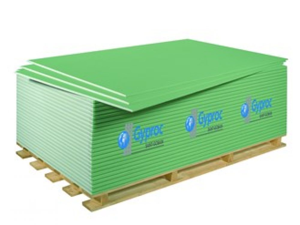 Gyproc gypsum plasterboard (moisture resistant) consists of a gypsum core, lined with cardboard. The face of the Gyproc gypsum plasterboard has a light green colour. This material has a high resistance to moisture. Moisture resistant sheets are used in Gyproc decoration of high humidity: bathrooms, kitchens, bathrooms, laundry rooms, basements, attics.