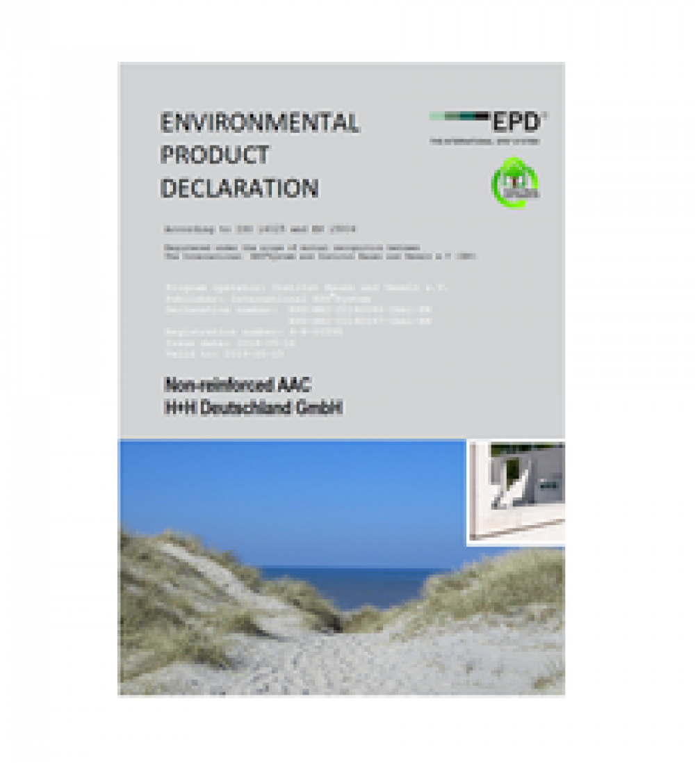 The AAC 2-0.35 product selected for the Declaration represents the product in the lowest raw density class while the AAC 8-0.80 product represents the highest gross density class among the AAC masonry units manufactured by H+H Deutschland GmbH. An average for the AAC 2-0.35 product is formed by weighting in accordance with the annual production volume at the three locations. The AAC 8-0.80 product is only produced at one location (Wittenborn I).