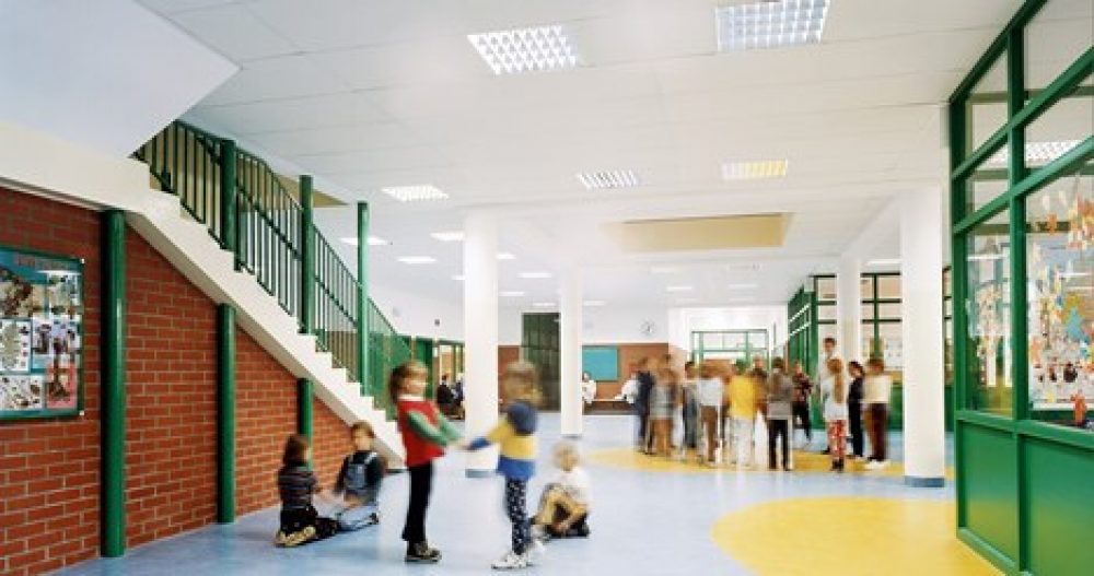 The production site of Saint-Gobain Ecophon (Sweden) produces acoustic ceilings and wall absorbers based on glass wool with a plant based binder in different densities and thicknesses. The glass wool is covered with a painted or woven surface layer and cut into panels of different sizes and edge designs.