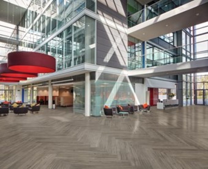 LooseLay LVT is made primarily from calcium carbonate (limestone), polyvinyl chloride, plasticizers, additives (i.e. pigments and stabilizers). The manufacturing process produces a product with a multiple-layer (heterogeneous) construction, structured with five specific layers: (1) PVC backing layer (2) glass fibre layer (3) high definition photographic layer 94) clear PVC embossed wear layer and (5) a top polyurethane (PU) protective coating.