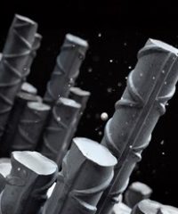 Steel rebar used to reinforce concrete in the construction industry. The surface of the rebar is corrugated to limit the relative longitudinal movement between the steel and the surrounding concrete. …